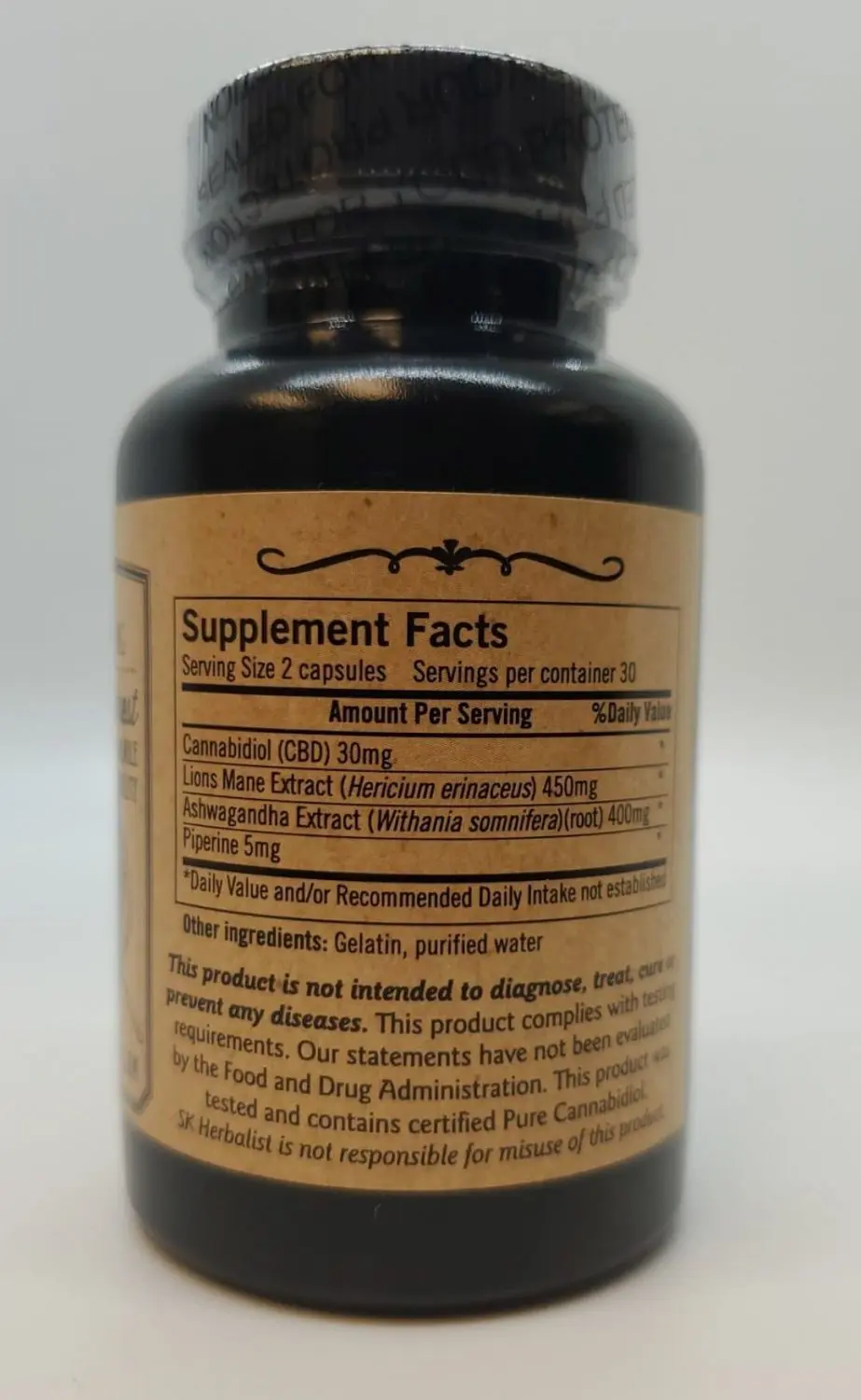 - Brain Formula – Contains: Hemp CBD, Lions Mane Extract, Ashwagandha Extract and Piperine (Gelatin and Purified Water)