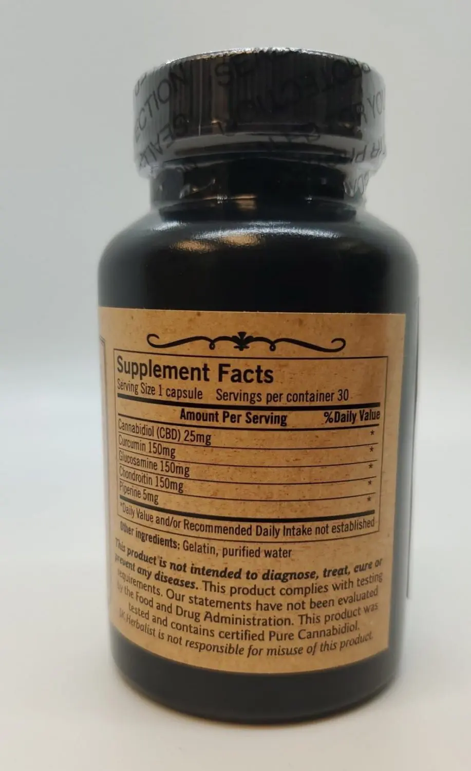 - Joint Formula – Contains: Hemp CBD, Curcumin, Glucosamine, and Chondroitin (Gelatin and Purified Water)